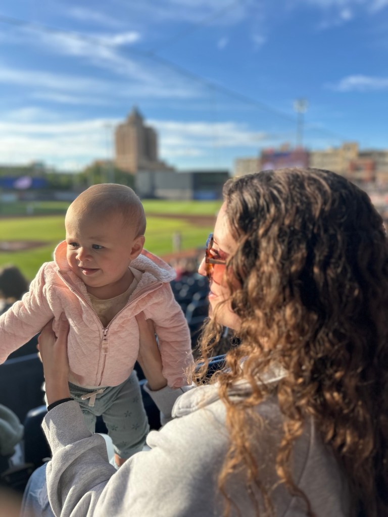 As long as she’s had decent naps and she’s a happy girl, we go to the games. Yes, I sometimes get in my head about how late it’s getting or how long her wake window has been—but then we balance. We listen to our intuition, not the Instagram moms selling baby sleep courses.